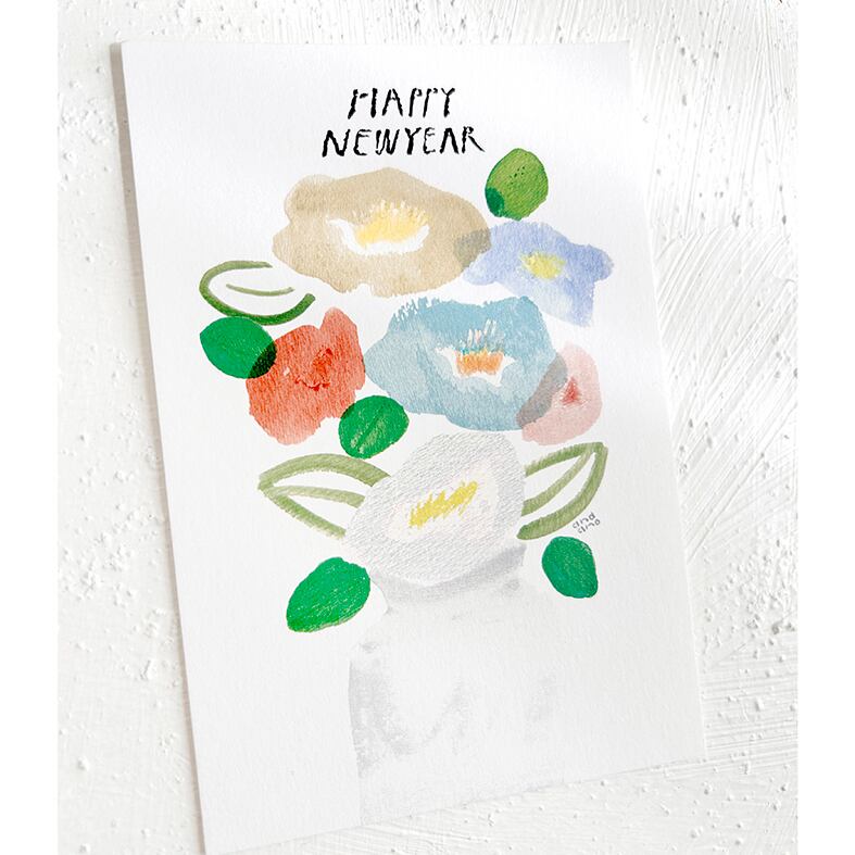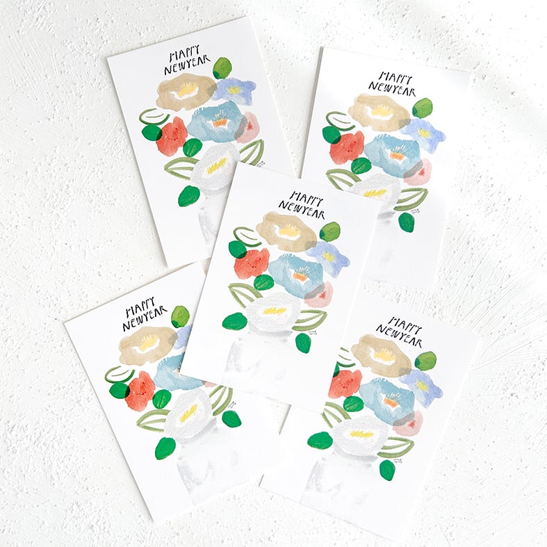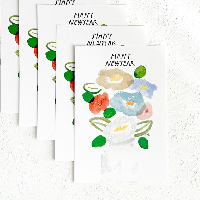 年賀のお花 ポストカード5枚セットです。